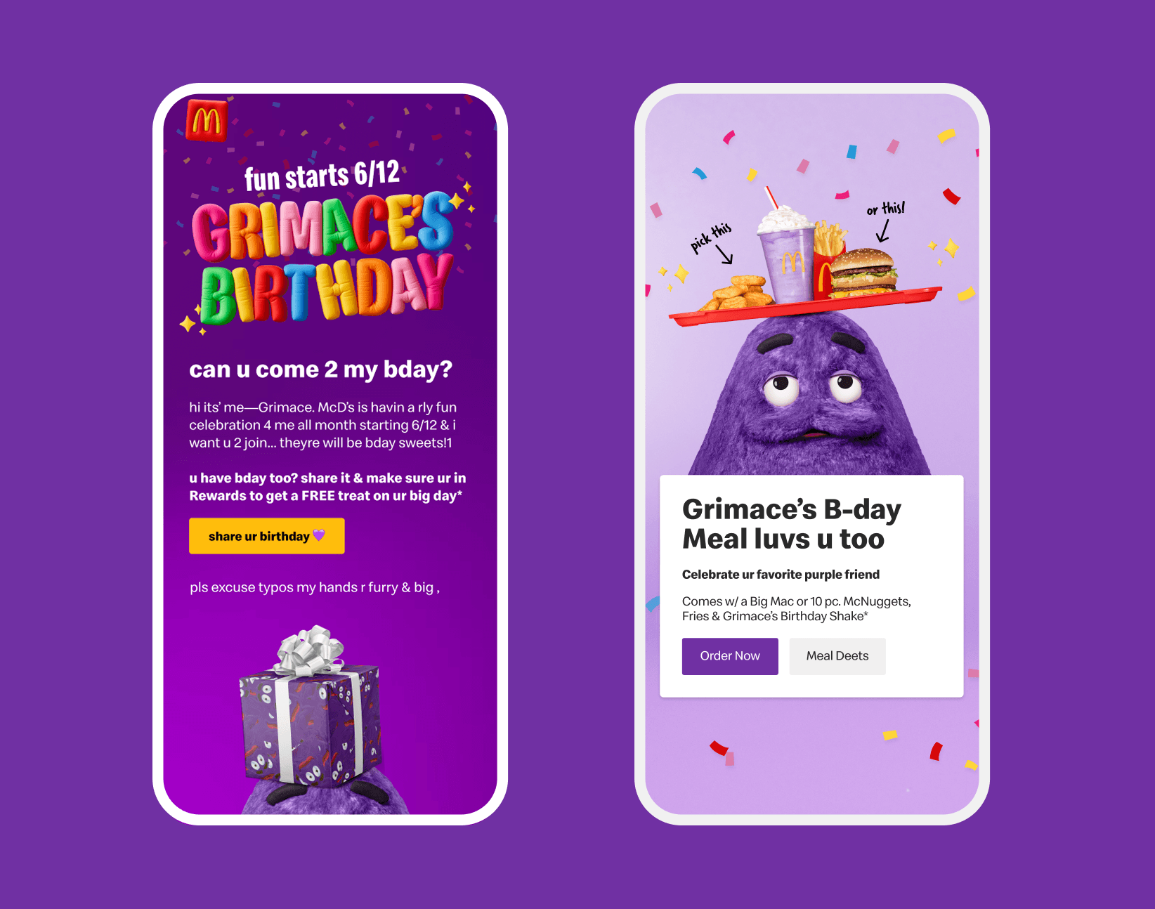 We threw a month-long celebration of everyone’s favorite brand character, Grimace,with the ingredients to let youth make it their own. We also leveraged the playfulness of the character, and of course the iconic purple to make the visuals really stand out from the traditional McDonald's colors.
